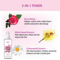 Iba 3-in-1 Rose Water Toner promotes vibrant, youthful, and evenly toned skin. Infused with rose water, it hydrates, calms, heals, visibly diminishes wrinkles, and prevents skin damage. Witch hazel extract assists in tightening pores, balancing pH, and enhancing skin tone, while chamomile extract helps reduce redness and irritation, prevent blemishes, and impart a healthy glow.Key Ingredients: