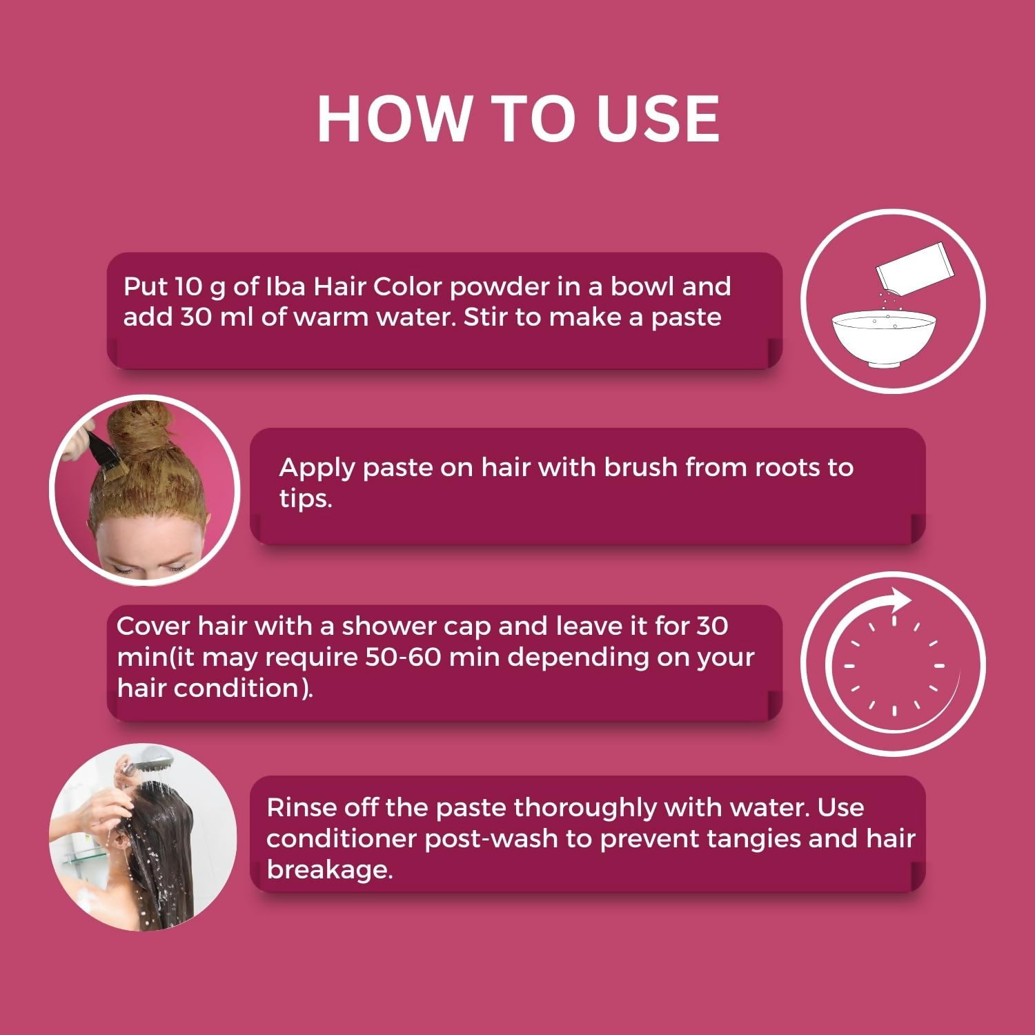 - 1. Place 10 gm of Iba Hair Color powder into a bowl and add 30 ml of warm water. Mix to create a paste.