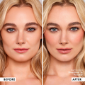 - Blend over the cheeks using fingertips, a blush brush, or a beauty sponge.