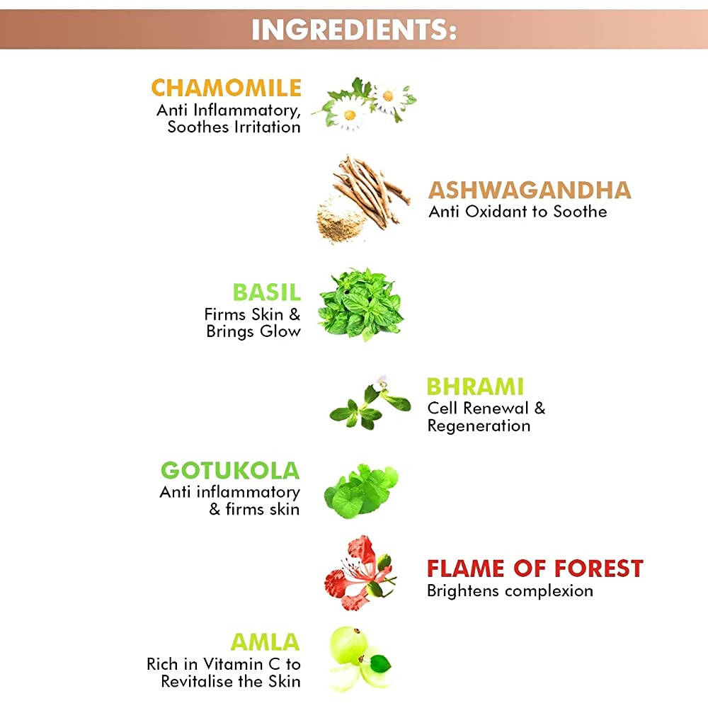 - Chamomile, Ashwagandha, Basil, Gotukola, Bhrami Flame of Forest & Amla