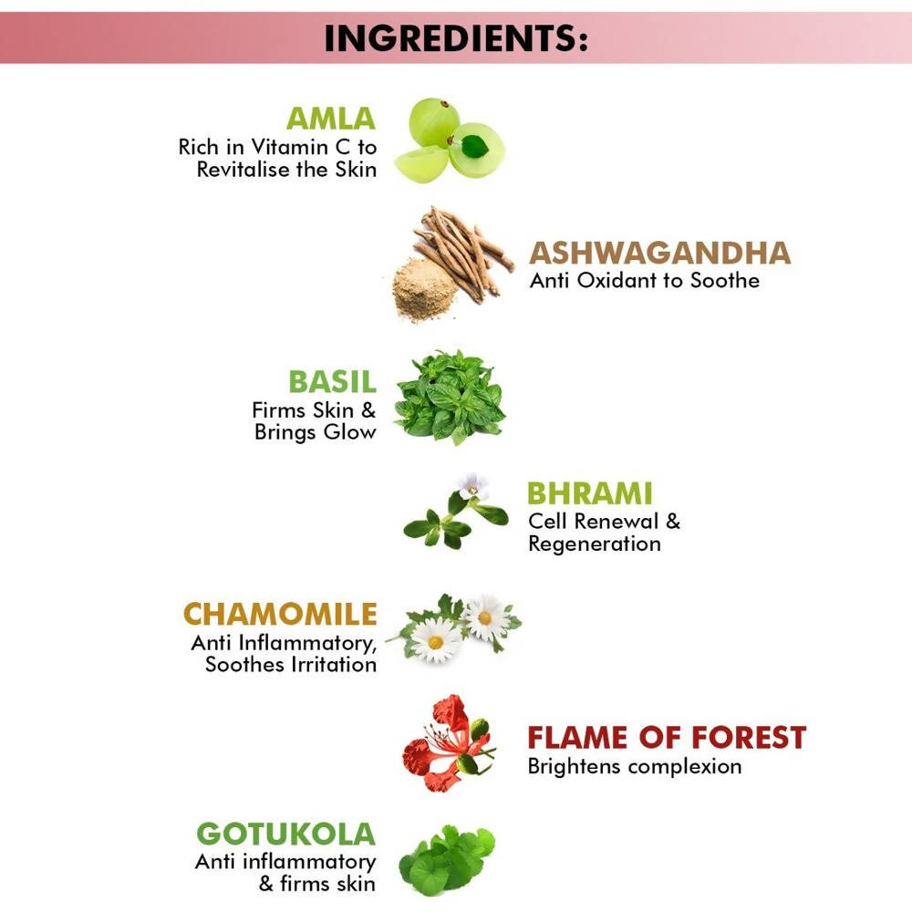 - Amla, Ashwagandha, Basil, Chamomile, Flame Of Forest, Gotukola.
