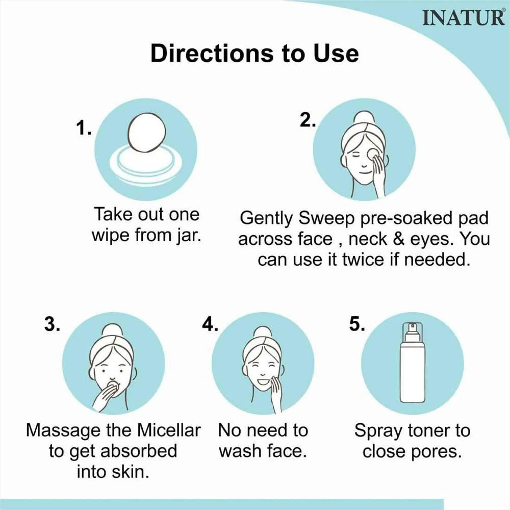 - Inatur Make-up Cleansing Wipes are convenient toner pads infused with Micellar water to leave your skin feeling refreshed, revitalized, and radiant.