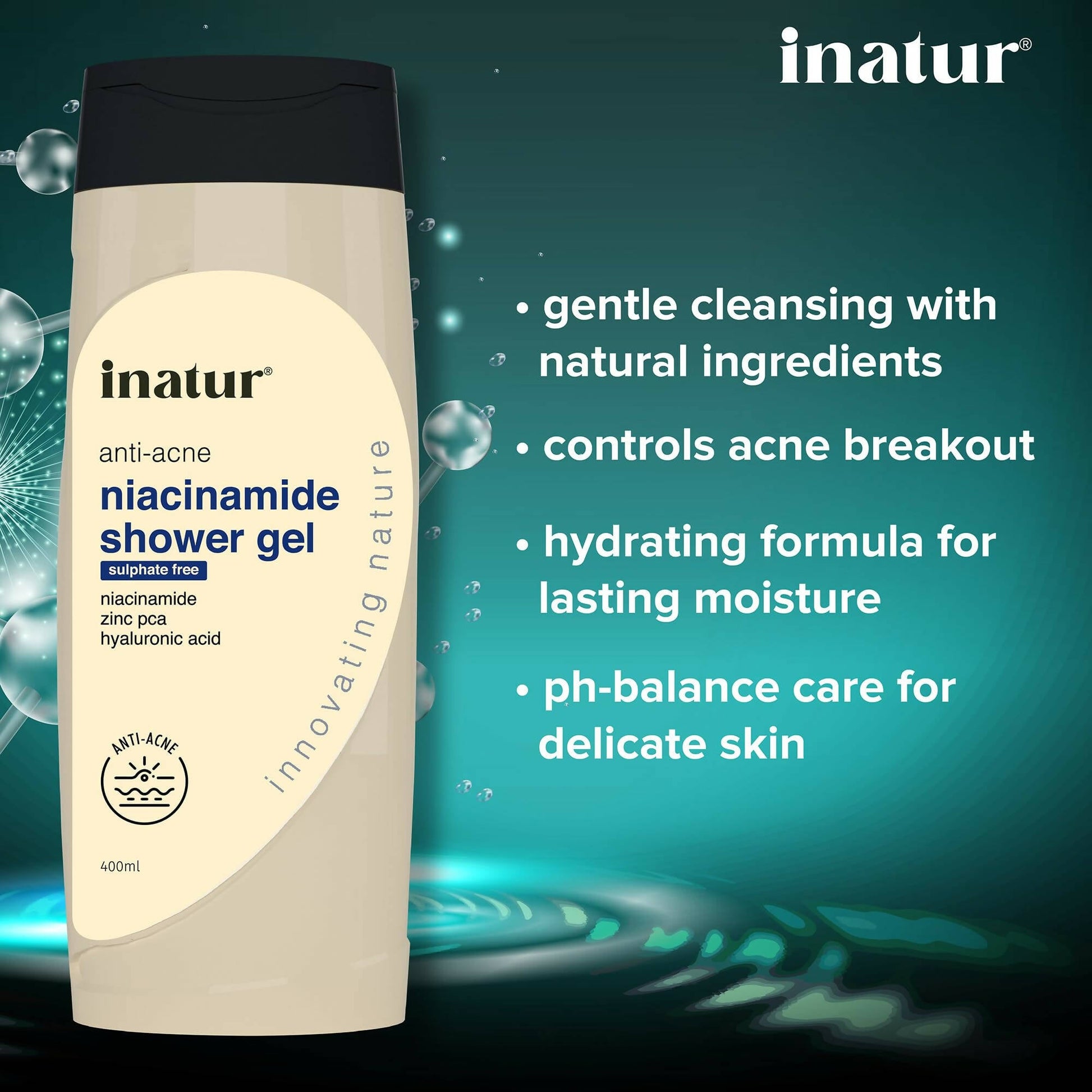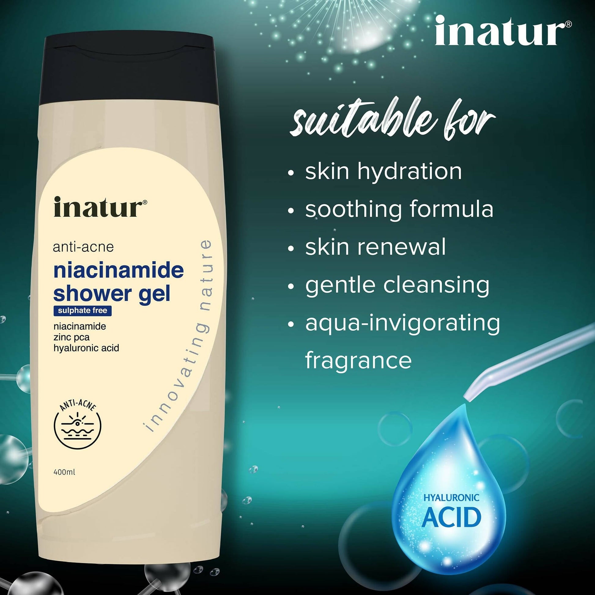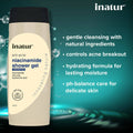 - GENTLE AND NATURAL: inatur Anti-Acne Niacinamide Shower Gel is vegan and formulated without sulfates, ensuring a gentle cleansing experience without stripping your skin of its natural oils.