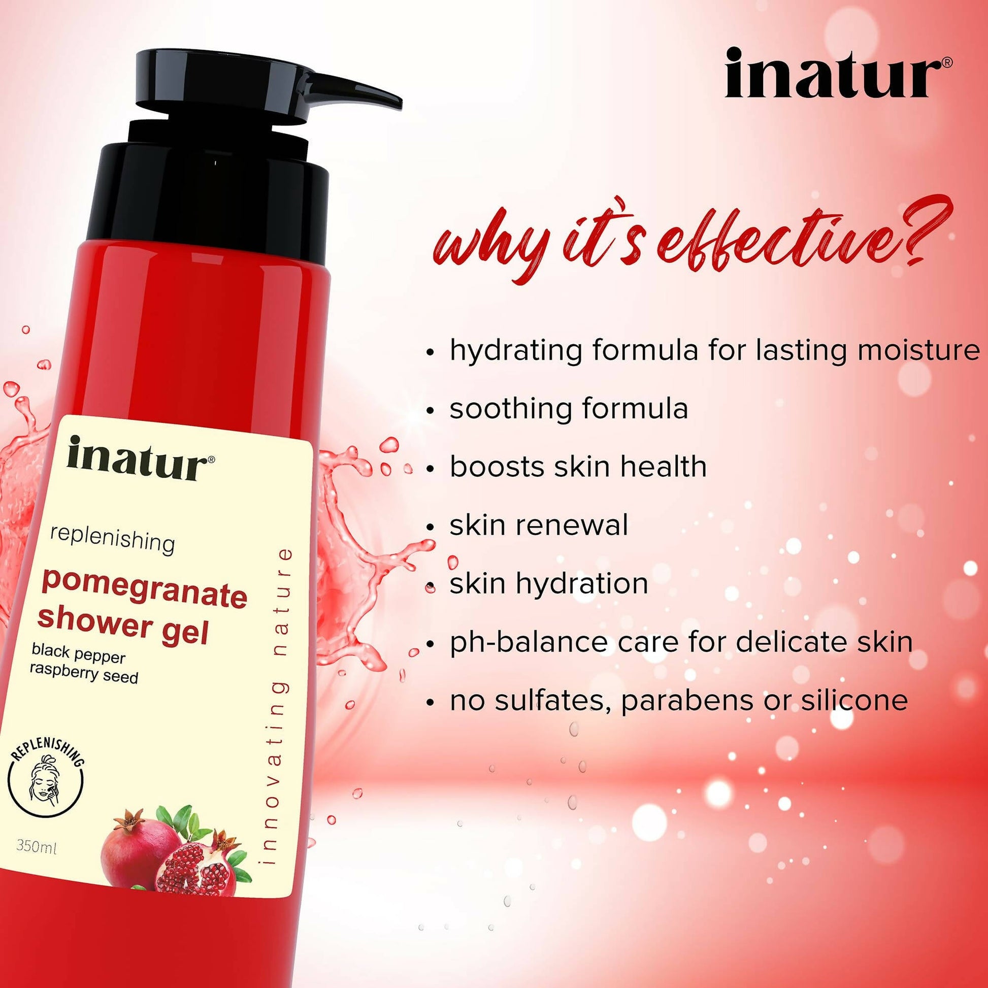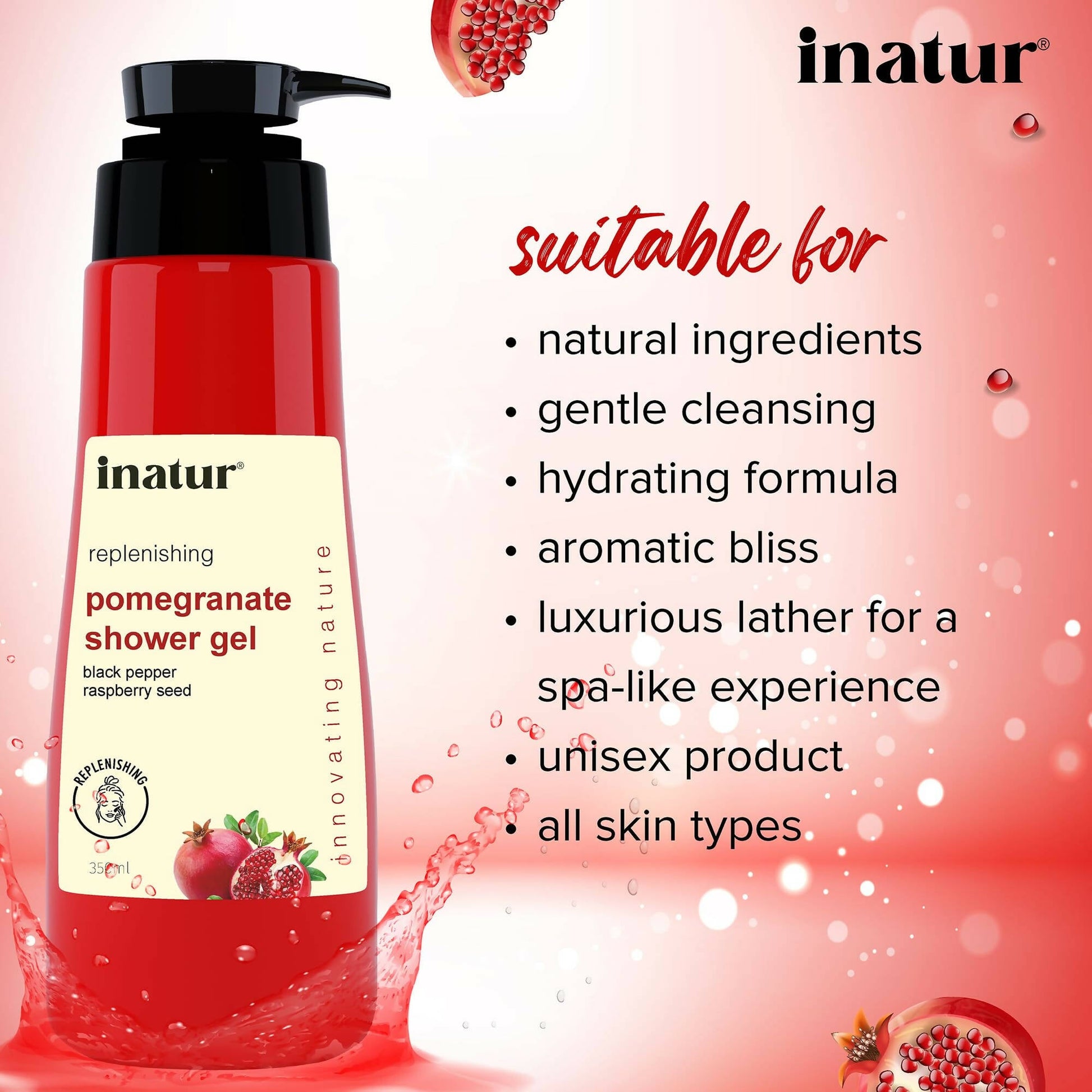 - NOURISHING: Enriched with the benefits of pomegranate, Inatur Pomegranate Shower Gel moisturizes and revitalizes your skin, leaving it silky and smooth.