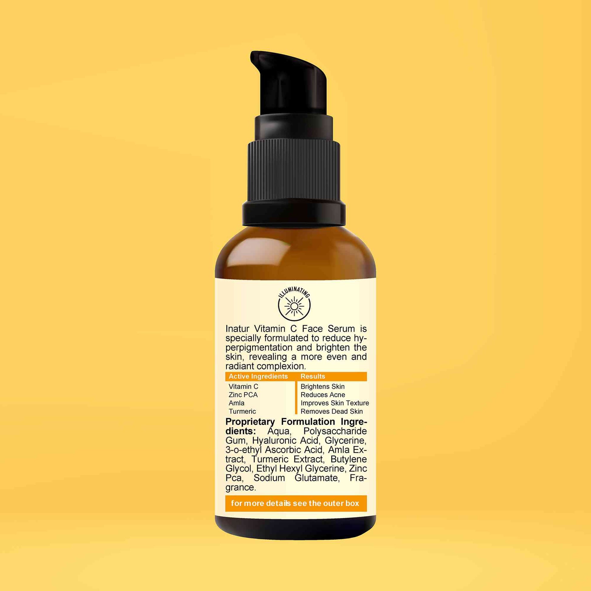 - Dispense a few drops of Inatur Vitamin C Serum onto a clean, dry face. Gently massage it with your fingers in circular motions, covering your face and neck until it is fully absorbed. Suitable for both day and night use prior to applying other products.