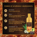 Alongside Bringharaj, it incorporates herbs such as Neem, Shikakai, Tulsi, and Amla, renowned for their rich content of antioxidants, minerals, micronutrients, and vitamins that enhance scalp blood circulation, fortify hair follicles, and reduce hair fall.