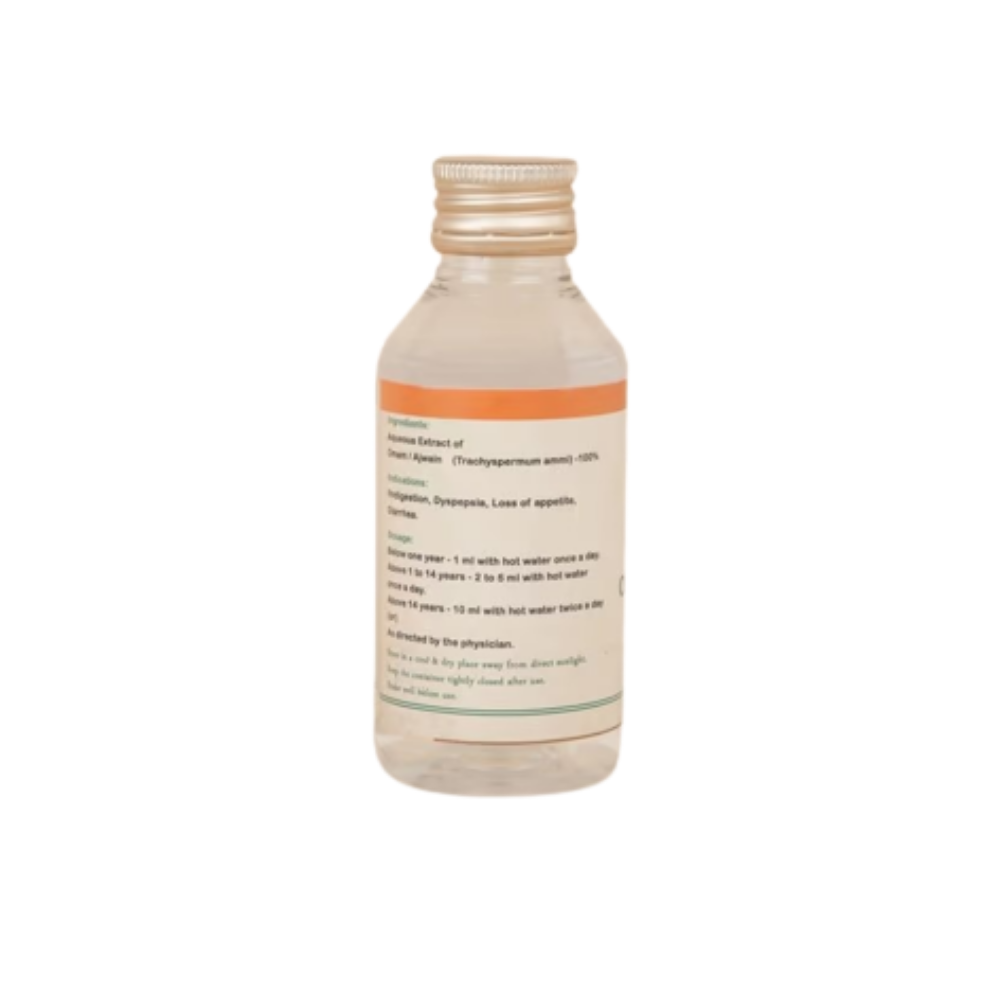 Oma water is medicine in liquid form with carom seed or ajwain as its core ingredient. It focuses mainly on abdominal disorders.