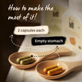 - It is advisable to take 2 capsules in the morning on an empty stomach with warm, mild honey water.