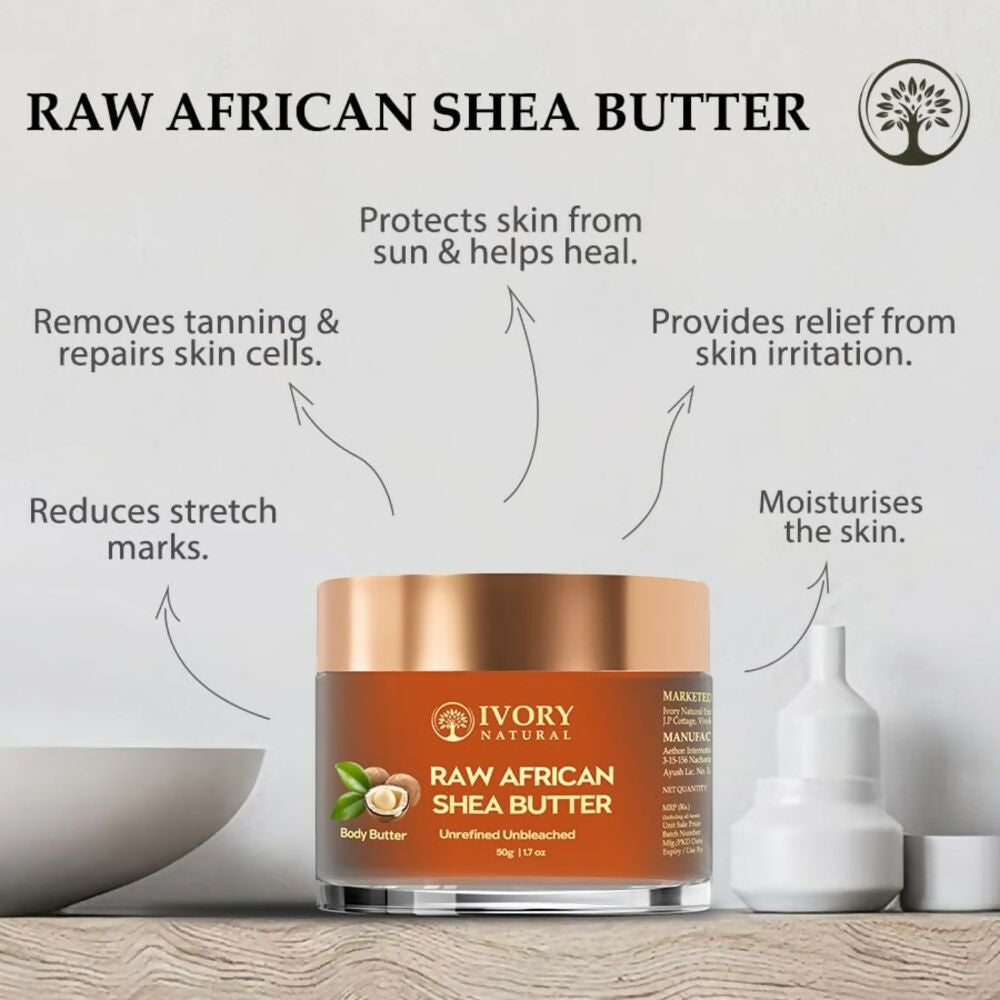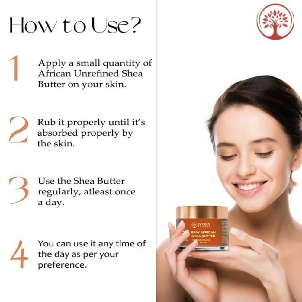 - Experience the remarkable virtues of Ivory Natural African Shea Butter Unrefined, sourced directly from Africa. This exceptional butter is ideal for both skin and hair care. Derived from organic shea nuts, it is brimming with natural nutrients to enhance your radiance. Meticulously handcrafted, it retains all its beneficial properties. It's excellent for maintaining soft and smooth skin. Embrace stunning skin with this exquisite shea butter!