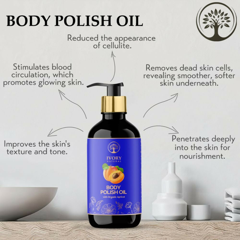 Ivory Natural Body Polish Oil for Exfoliation, Hydration, & Renewal for Radiant Results