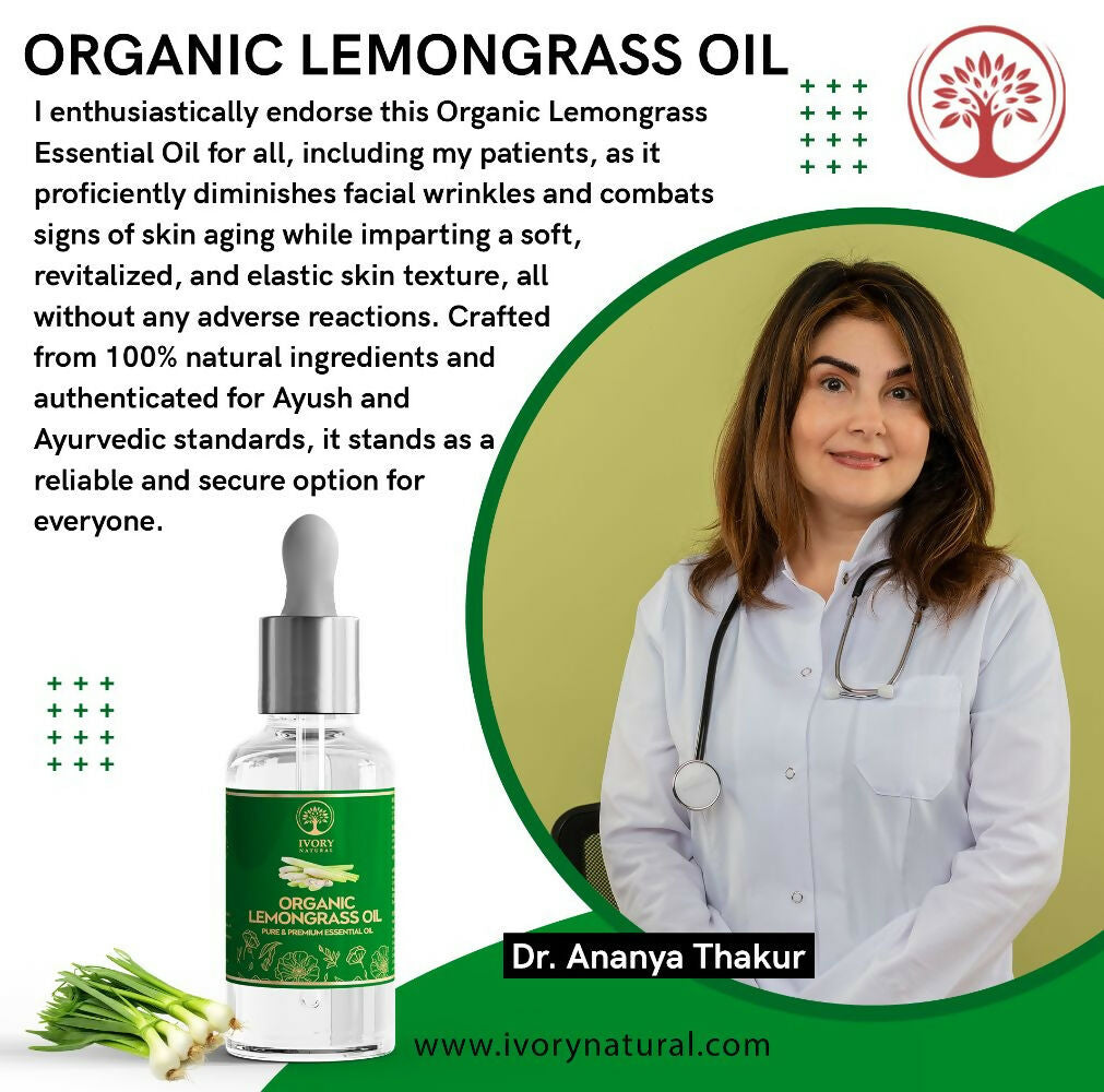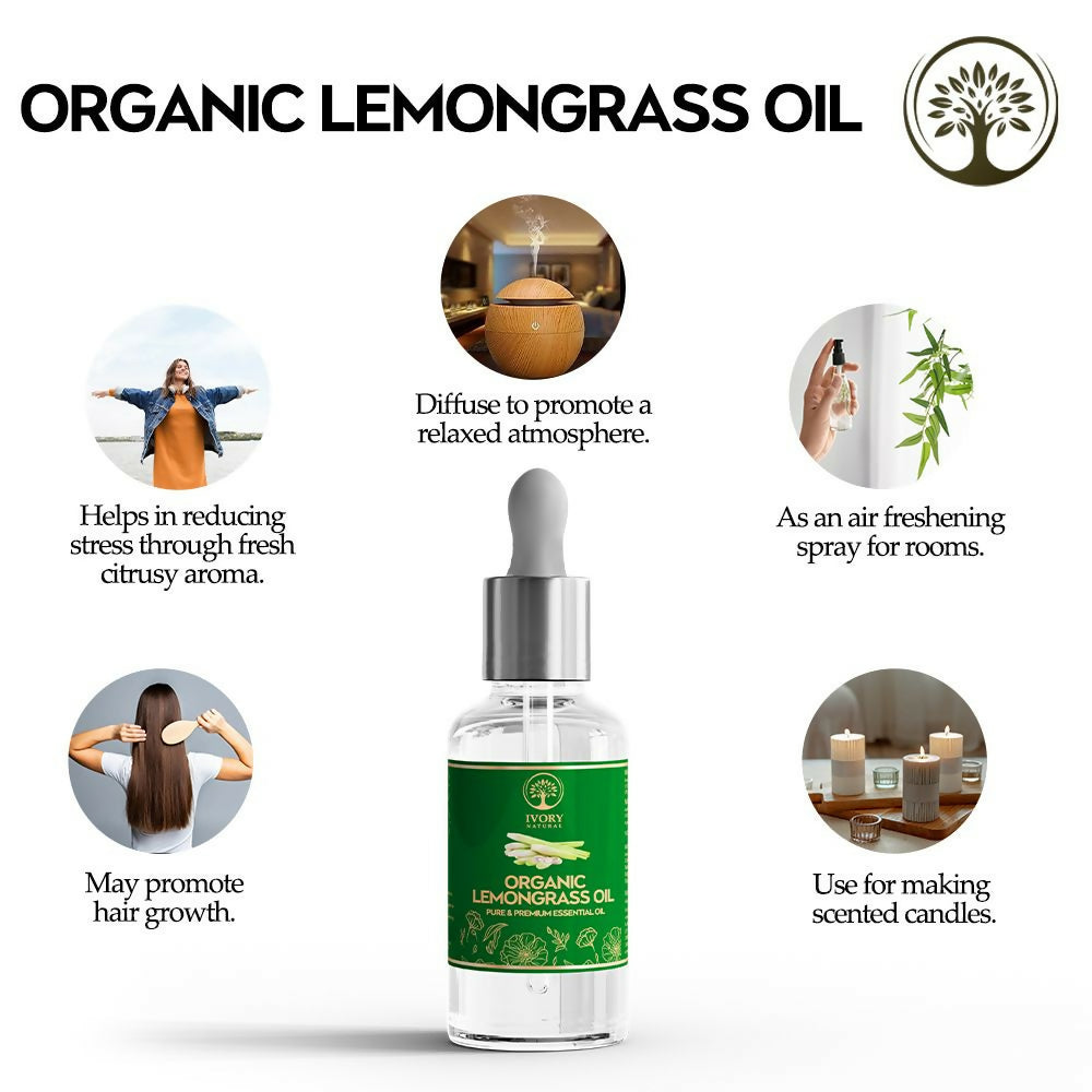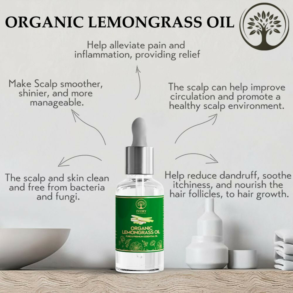 Ivory Natural Organic Lemongrass Oil Pure & Premium Essential Oil For Face, Scalp & Skin