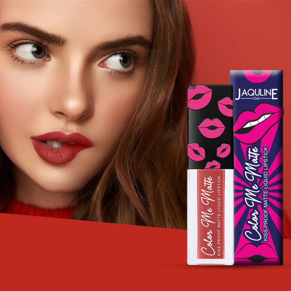 Experience the Jaquline USA Color Me Matte Lipstick, available in a captivating spectrum of shades that enhance every complexion. Whether you're drawn to understated nudes, seductive reds, or the most daring hues, this enduring matte lipstick is crafted to deliver a flawless pout without any smudging or fading. Its vegan and silky formula applies with ease, dries to a matte finish, and provides bold color that endures all day long. Enriched with vitamin E and tea tree oil, it ensures your lips stay hydrated and nourished, maintaining their natural shine.How to use: