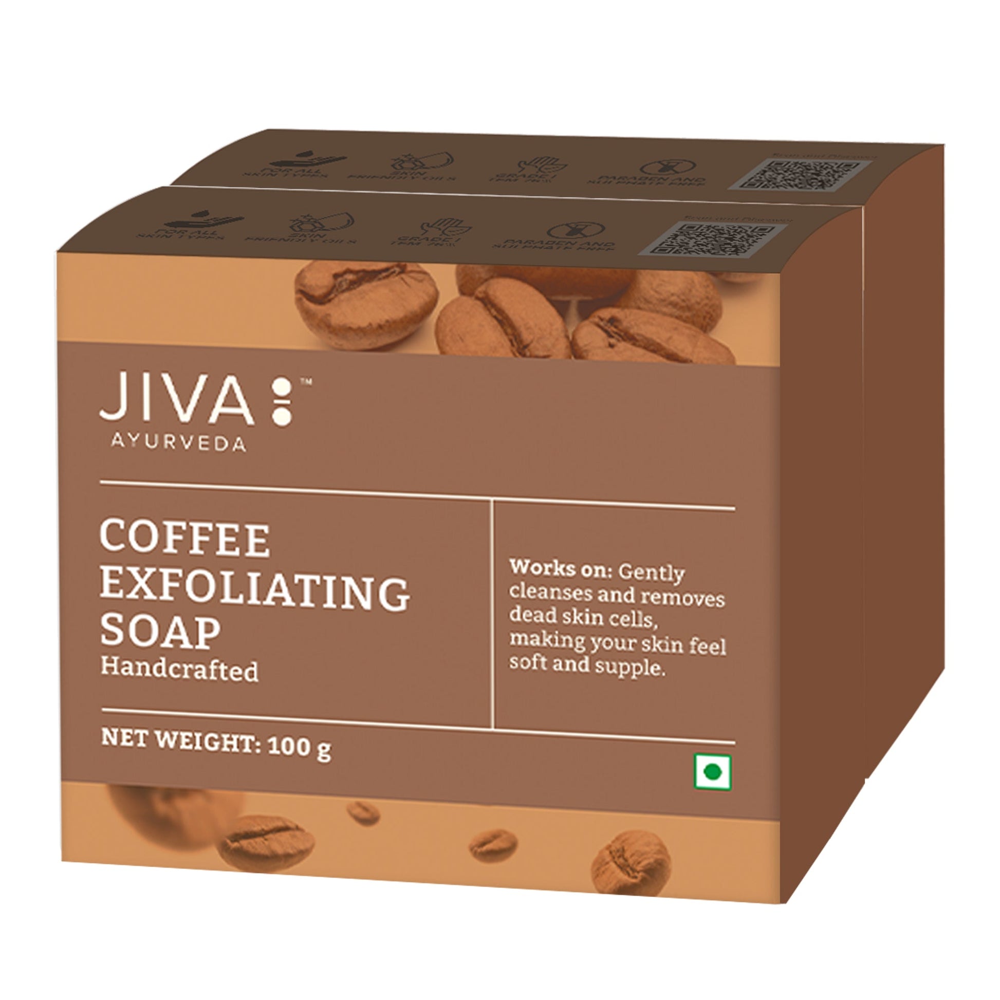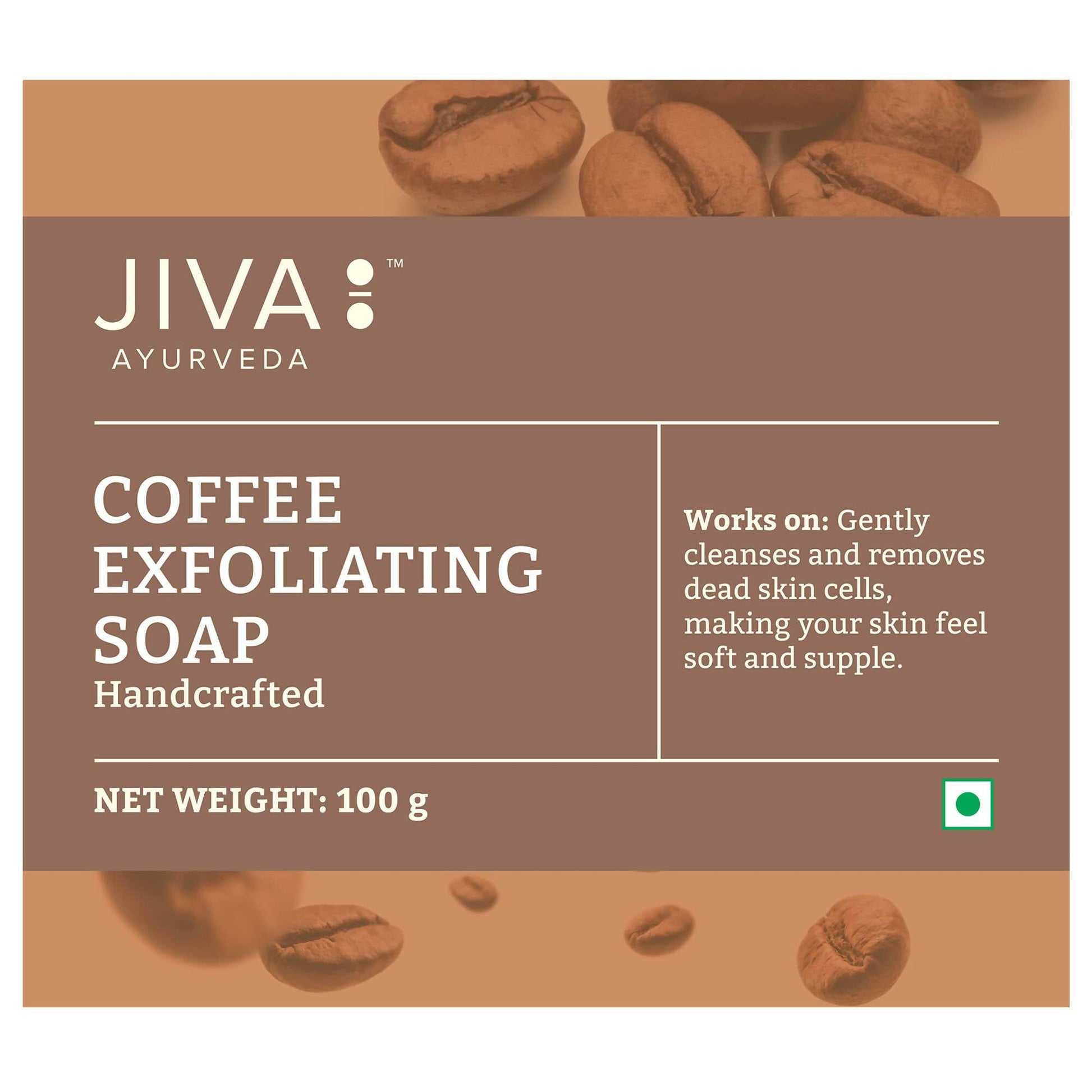About the Product:- Jiva Coffee Exfoliating Soap is naturally crafted with freshly ground coffee, coffee oil, and other skin-friendly cold-pressed oils that delicately exfoliate and cleanse your skin while ensuring it remains nourished and hydrated.