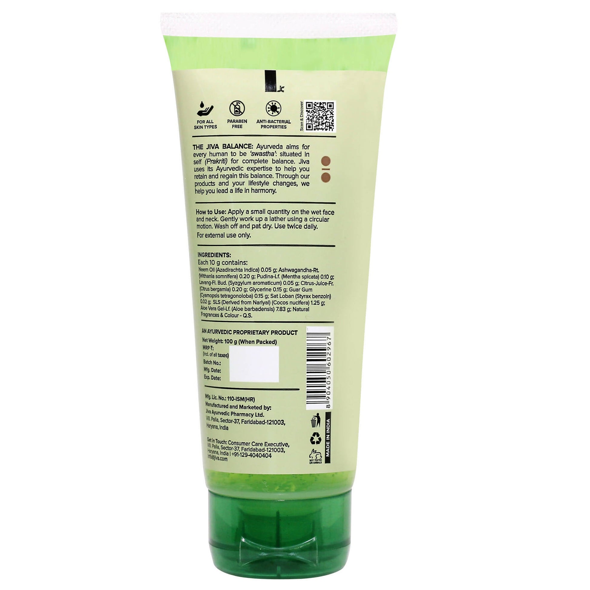 About the Product:- Experience the Jiva Neem Face Wash, a harmonious blend of neem, tulsi, aloe vera, and lemon. Renowned for its antibacterial qualities, neem enhances skin wellness and resilience, effectively combating bacterial issues like acne and boils. Tulsi, also cherished as the holy basil, imparts a radiant glow to your complexion. Lemon acts as a potent astringent, minimizing pores, while aloe vera ensures the skin remains soft and supple.