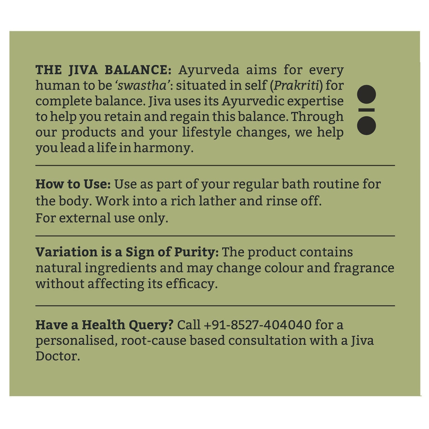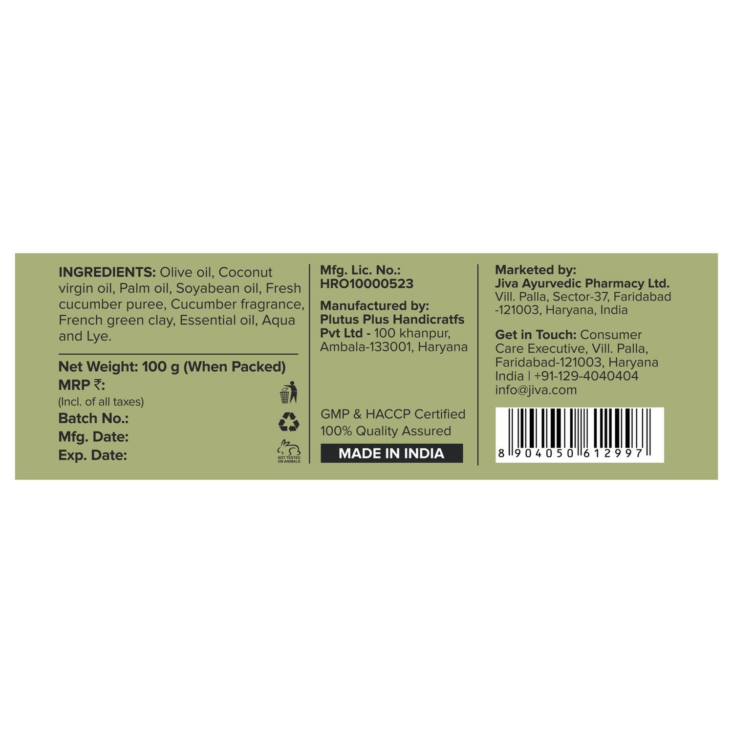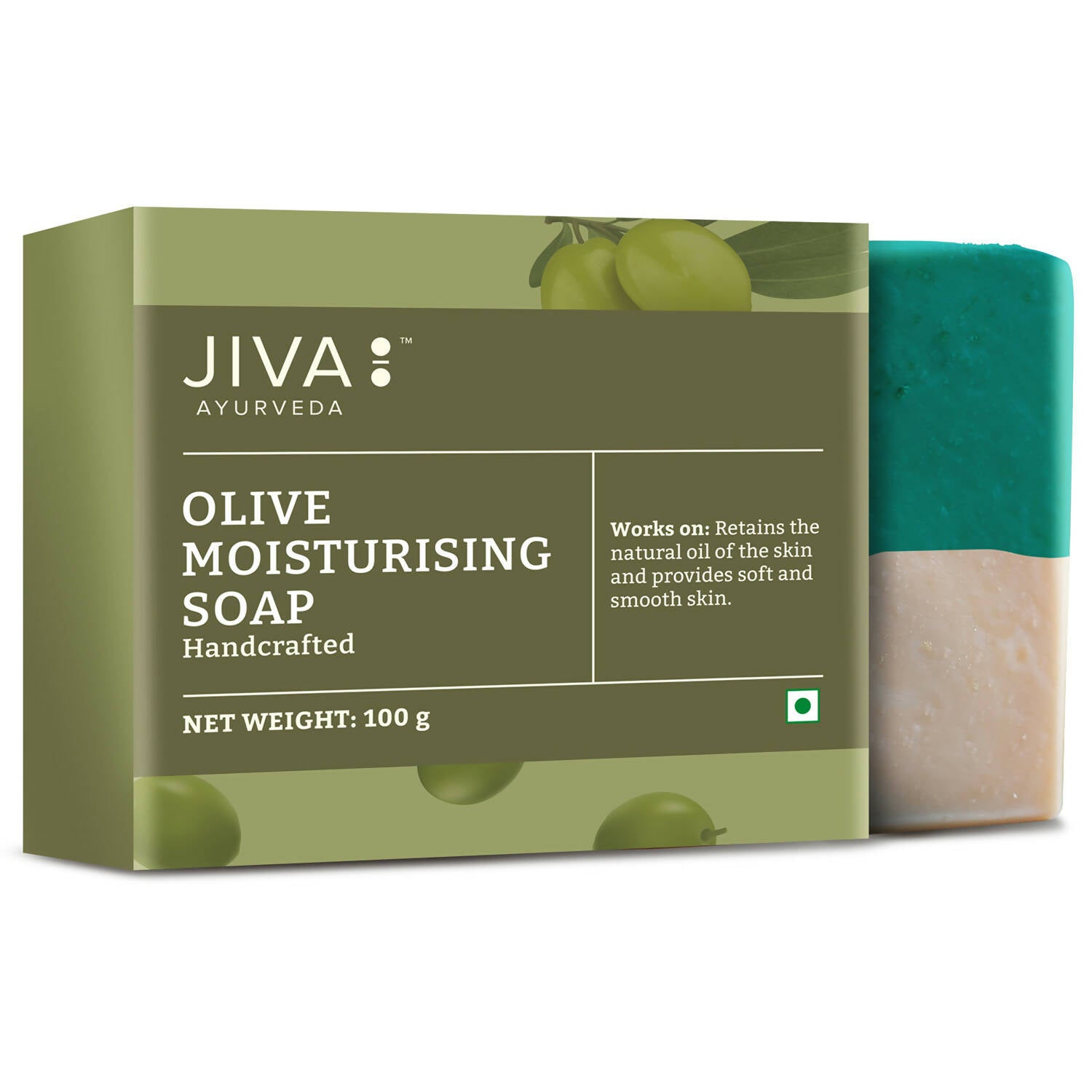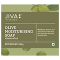 About the Product:- Jiva Olive Moisturizing Soap is crafted using skin-friendly cold-pressed oils and natural ingredients to shield the skin from environmental stressors and oxidative damage. This artisanal soap is biodegradable and eco-conscious, devoid of petroleum derivatives that can harm the planet. Created in small batches, this soap boasts top-tier quality and is entirely safe for use on all skin types. Olive, the primary component, is abundant in Vitamins E and A, making it an outstanding moisturizer that diminishes dryness and dehydration, leaving your skin velvety, smooth, and elastic. Additionally, it aids in regulating the skin's oil production, imparting a healthier appearance. With antioxidant properties, it safeguards your skin against oxidative stress. Infused with Fresh Cucumber Puree and Cucumber Fragrance, Jiva Olive Moisturizing Soap ensures a refreshing sensation throughout the day.