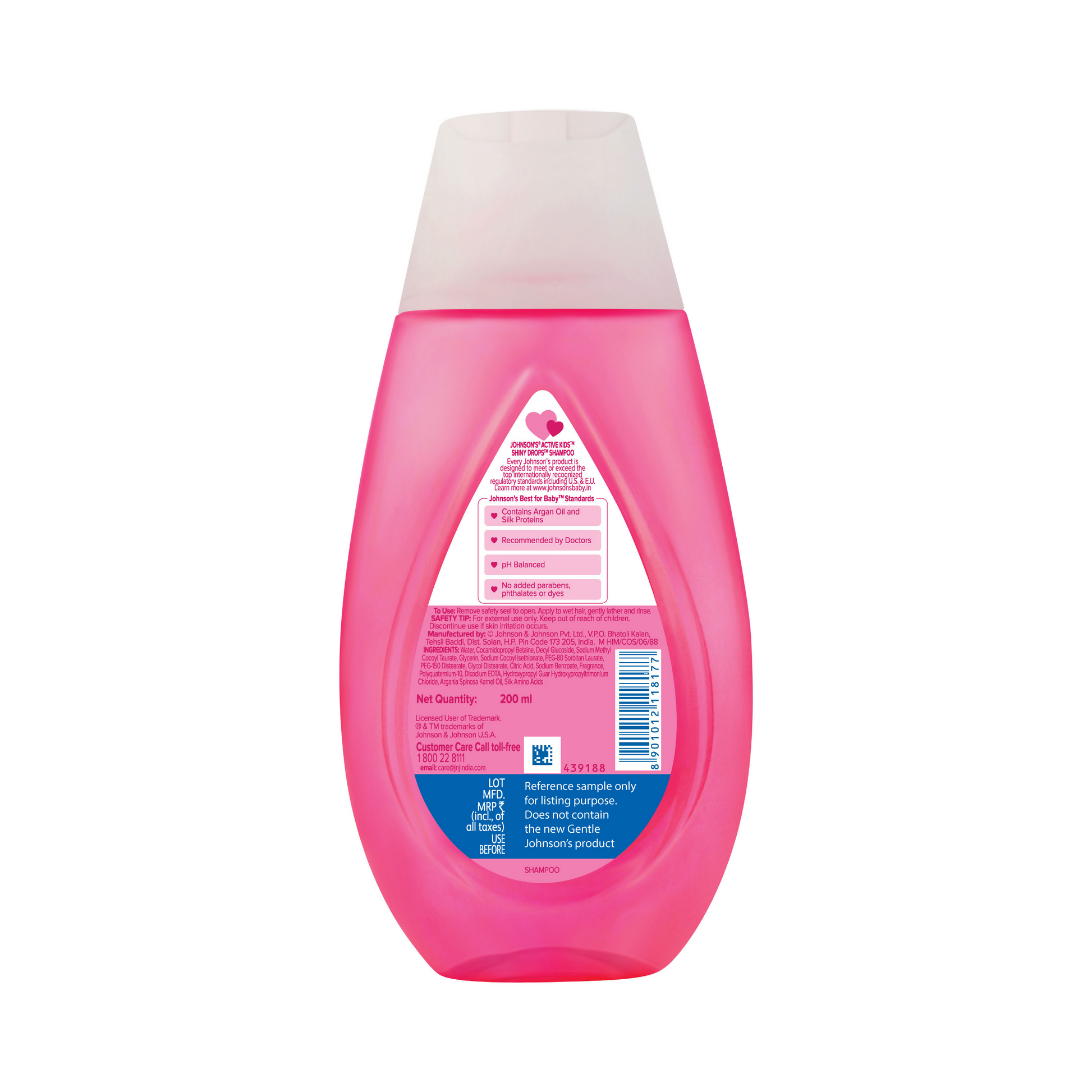 - JOHNSON'S recognizes that as your little one grows, their hair evolves and requires its own unique care. Johnson's Shiny Drops Kids Shampoo features a cutting-edge formula, enhanced with a hint of silk proteins and a touch of argan oil. It enhances the hair's natural luster and minimizes frizz, resulting in hair that is silky smooth and appears healthy. Crafted by hair care experts, this shampoo is gentle on the scalp, effectively and safely cleansing hair without leaving it dry or with residues, delivering a sensation of soft and free-flowing hair from the very first use.