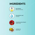 - Bio-retinol, Hyaluronic acid, Pomegranate extract, Aloe vera extract, Grape Seed extract, Olive oil, Jojoba oil, Vitamin E