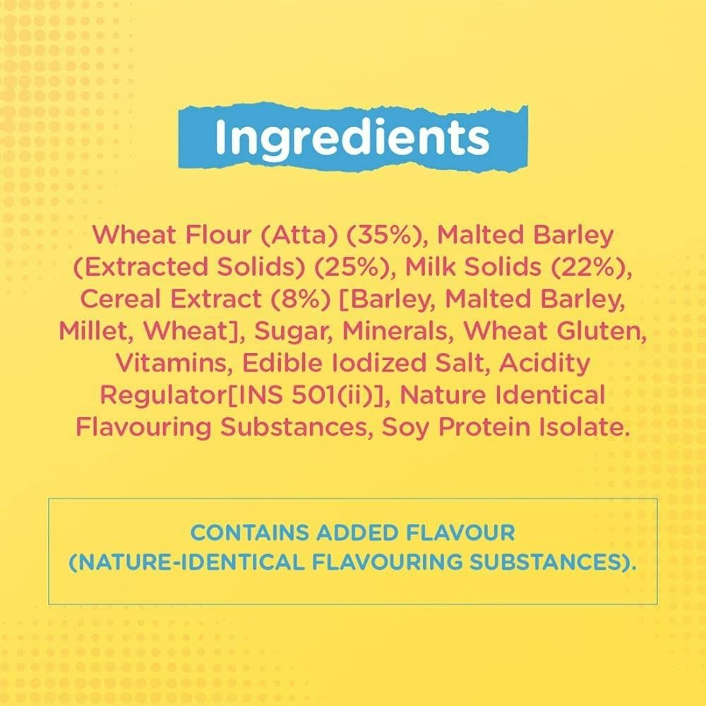 Junior Horlicks contains both milk and wheat flour. If your kid has any allergies, consult a doctor before adding Junior Horlicks to their diet.