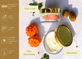 Calendula, Peppermint oil, Nutmeg, Fenugreek extract, Liquorice, Indian frankincense, Zinc oxide, Sunflower seed oil, Caprylic/capric triglycerides, Beeswax, Avocado oil, Castor oil, Safflower oil, Jojoba oil, Aloe vera oil, Vegetable Glycerine, Soy Lecithin, Shea butter, Dicaprylyl Carbonate, Disodium EDTA, Potassium sorbate, Sodium benzoate, Natural preservative (Herbs-Essential oil Complex), Fragrance. Certified Organic Certified Organic Cold Pressed ECOCERT approved (Natural ingredient from renewable resources)