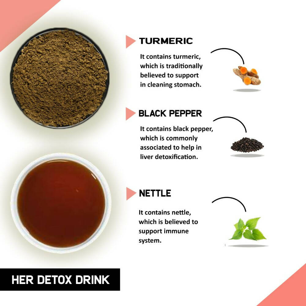 Recommended Daily Dose - Consuming 2 grams (in 100 ml each) a day of Justvedic Her Detox Drink Mix for a period of 90 days will help you detoxify your body completely and assist you with losing weight. Consistency is key, so please don't skip days. Mixing with other brands is not advisable as it may reduce the efficacy of our Her Detox Drink Mix.