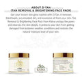 Achieve a luminous complexion swiftly with D-Tan. This face pack eliminates blackheads, dirt build-up, and excess oil from your skin. Kaina's Tan Removal & Brightening Face Pack effectively unclogs pores and provides a deep cleanse. It shields your skin from harsh weather conditions and replenishes its natural moisture balance.