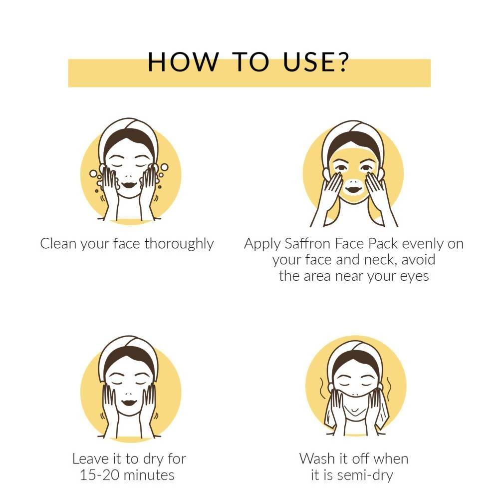 Apply the Saffron-Pigmentation & Scar Removal Face Pack uniformly on your face and neck, avoiding the eye area