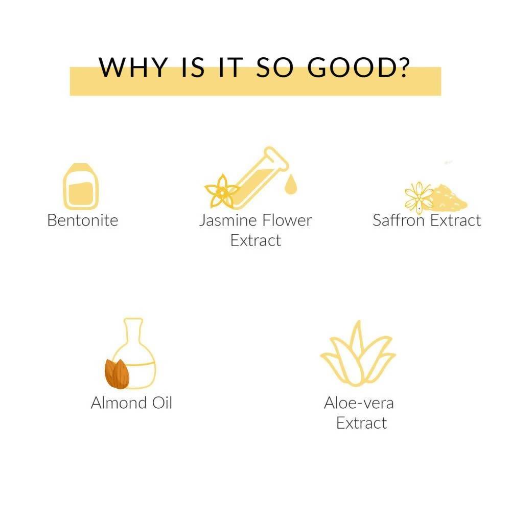 Extract, Annantmool, Jasmine Flower Extract, Kaolin, Fuller's Earth, and Bentonite.