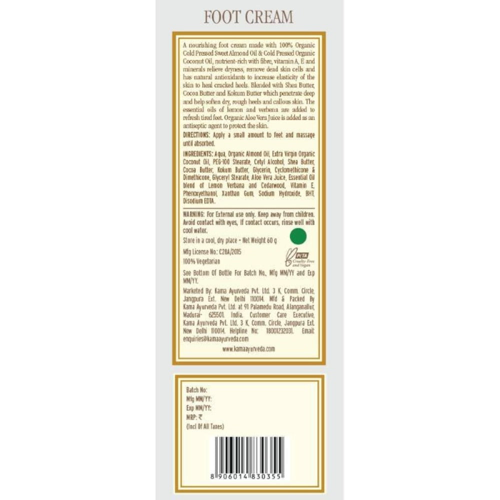 This enriching foot cream is crafted with 100% Organic Cold-Pressed Sweet Almond and Coconut Oils that alleviate dryness and mend cracked and chapped skin. With a natural antioxidant composition, consistent use enhances skin elasticity to restore cracked heels. It is combined with Shea Butter, Cocoa Butter, and Kokum Butter, which deeply penetrate to soften dry, rough heels and calloused skin. Organic Aloe Vera juice serves as a protective antiseptic agent to hydrate and shield against germs and toxins. The revitalizing essential oils of Lemon, Verbena, and Cedarwood refresh and energize fatigued feet.