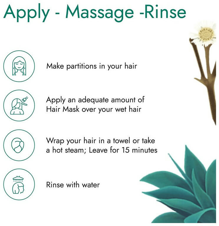 - Apply a suitable amount of the hair mask and gently massage into the scalp and hair