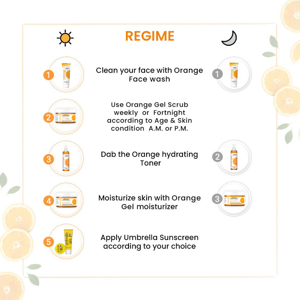 - Apply the scrub to your damp face and body. Let it sit for 3 to 5 minutes, then emulsify with water. Avoid the eye area. Rinse the face and body thoroughly with water. Pat dry. Use weekly or bi-weekly based on your age and skin condition. Incorporate Orange Face Wash, Orange Hydrating Toner, and Orange Gel into your morning and evening beauty routine to enhance your skin's glow and detoxification.