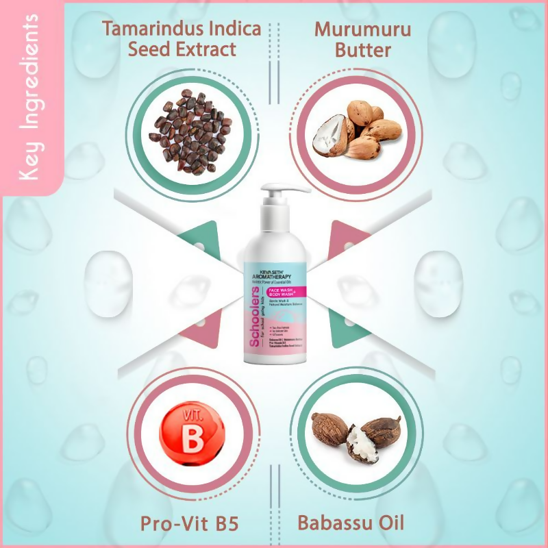About the Product:- Keya Seth Aromatherapy Schoolers Face Wash + Body Wash is designed specifically for the delicate and sensitive skin of school-aged girls and boys over 3 years old. This versatile, all-season wash revitalizes and nurtures facial and body skin without leaving it dry after bathing. Crafted in India, it boasts a delightful, refreshing fragrance that children will adore. The product caters to the luxurious bathing needs of kids, featuring four essential ingredients: Activeshine Amazon 3R, Day Moist CLR, glycerin, and Unitamuron H-22, each playing a unique role in maintaining healthy, hydrated skin.