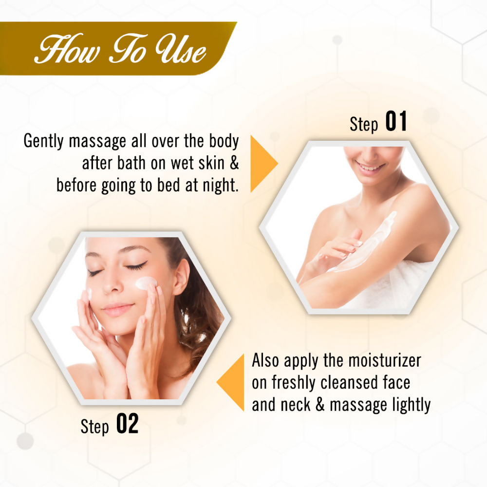 - Gently massage all over the body after bath on wet skin and before going to bed at night Also, apply the moisturizer on freshly cleansed face and neck and massage lightly.