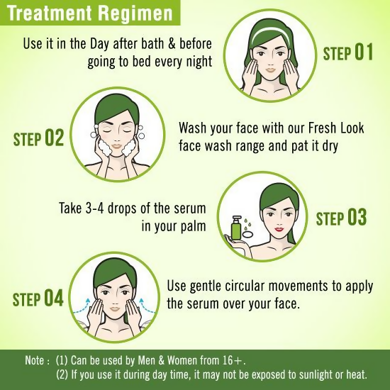 - Dispense 3-4 drops onto a cleansed and dry face; gently massage across your face and neck after showering and before bedtime.