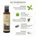 Bid farewell to stress with Khadi Essential Barahmasa Hair Oil infused with Bhringraj. This powerful ayurvedic oil is enriched with 21 herbs that assist in alleviating stress and fatigue, while providing relaxation to your scalp and mind, and enhancing the health of your hair.It is imbued with the serene qualities of calming herbs such as Brahmi, Camphor, Lavender, and Thyme, which alleviate headaches and foster relaxation. In addition to reducing stress, this hair oil deeply penetrates the scalp, stimulates growth, and diminishes hair fall.
