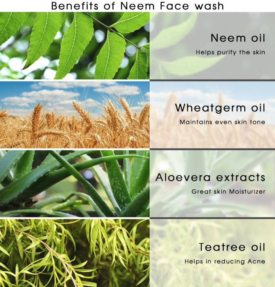 Neem Face Wash is designed to cleanse the skin and maintain its oil balance. It effectively eliminates clogging dirt, oil, and impurities, leaving the skin refreshed and healthy. The cleansing properties of Neem help reduce frequent occurrences of acne and pimples. Experience the luxury of a rich foaming face wash that is gentle on your skin.