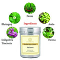 - Indigofera Tinctoria (Indigo), Lawsonia Inermis (Henna), Emblica Officinalis (Amla), Eclipta Alba (Bhringraj), Azadirachta Indica (Neem).