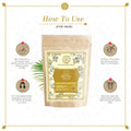 - For Hair: To form a yogurt-like paste, blend warm water with the Organic Neutral Powder. Generously apply it to dry hair, section by section, from the roots to the ends. Cover your hair with a plastic cap and a towel, leaving it on for a minimum of 30 minutes, up to 2 hours. Rinse thoroughly with lukewarm water to complete. If necessary, opt for a sulfate-free shampoo.