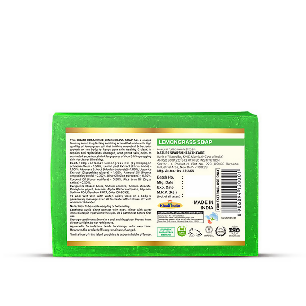 Khadi Organique Lemongrass Soap exudes a distinct lemony aroma, coupled with a prolonged calming effect, crafted from premium lemongrass oil that prevents the proliferation of microbes and bacteria on the skin, ensuring cleanliness and wellness. It mends and revitalizes skin prone to acne, aids in regulating oil production, and reduces the appearance of enlarged pores.