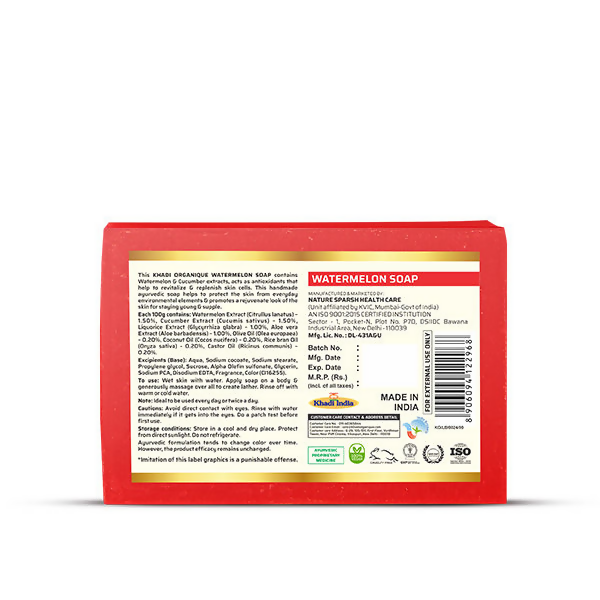 Khadi Organique Watermelon Soap is enriched with extracts of watermelon and cucumber, which serve as antioxidants to rejuvenate and refresh skin cells. The calming properties of this watermelon soap offer thorough cleansing while minimizing the visibility of skin redness after exposure to UV rays, enhancing the look of tired and mature skin. This handcrafted Ayurvedic soap also aids in shielding the skin from daily environmental factors.