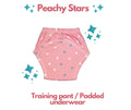 - Kindermum Training pants are crafted from padded cotton and muslin, designed to effectively contain both urine and feces.