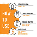 - Dispense a generous quantity of sunscreen into your hand and gently massage it evenly onto the skin at least 30 minutes before exposure to the sun.