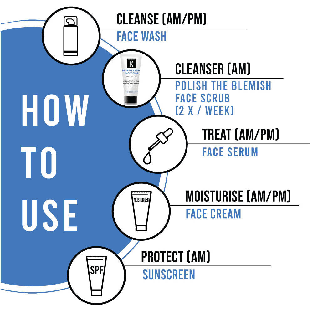 - Once or twice weekly, substitute your regular face wash with the face scrub. Apply a small amount to your fingertips and gently massage onto damp skin.
