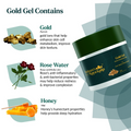- Herbals Gold Gel is a hydrating facial gel that is feather-light, non-oily, and soothing for the complexion. This natural age-defying marvel possesses anti-inflammatory characteristics that assist in calming acne-related irritation, lessening skin redness, moisturizing the skin, and enhancing collagen synthesis. Replace your usual moisturizer with Herbals Gold Gel. It is enriched with gold leaf, aloe vera, wheat germ oil, and honey. Gold is renowned for promoting a uniform skin tone and elevating skin quality. Aloe vera is celebrated for its skin-hydrating attributes, ensuring moisture without adding greasiness.
