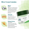 - Treat your skin to Kulsum’s Kaya Kalp Herbals Silver Cream, crafted with silver leaf, almond oil, saffron, aloe vera, and rose water. It soothes the skin during the sweltering summer months, leaving it soft, supple, clear, and rejuvenated. These skin-nourishing ingredients invigorate and refresh the skin. Silver is advantageous for the skin as it helps soothe redness, calm irritated areas, and balance oil production. The antioxidants also contribute to protection against free radical damage. Almond oil assists in evening out skin tone, reducing puffiness, and nourishing the skin. Saffron, rich in antioxidants, shields the skin from free radicals and UV rays. This potent Ayurvedic formulation thus imparts vitality to lackluster and fatigued skin.