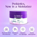 - The La Shield Intense Hydrating Cream Probiotic Moisturizer fosters a flourishing skin microbiome and strengthens the skin’s inherent moisture barrier, ensuring hydration for up to 72 hours. Its naturally nourishing formula enhances skin elasticity, leading to revitalized skin and a youthful glow. La Shield’s Probiotic Moisturizer harmonizes the skin’s natural flora, sustains the skin’s pH level, and mends UV-induced skin damage.