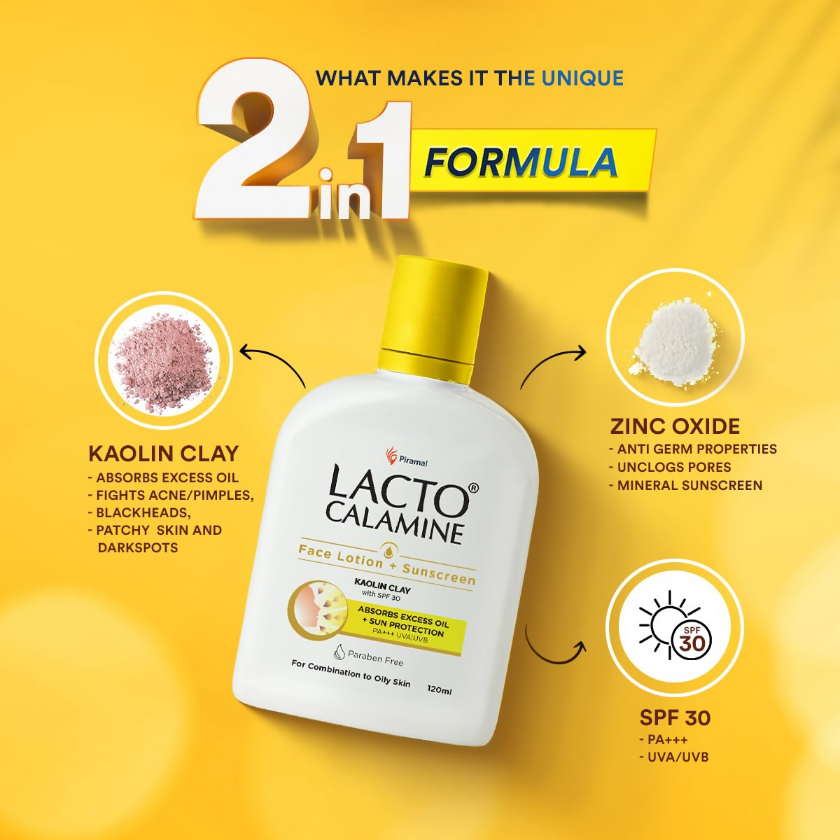 - COMPREHENSIVE PROTECTION: The Lacto Calamine Face Lotion + SPF is your ultimate skincare ally. It seamlessly combines the advantages of a lightweight moisturizer, SPF 30 defense against UVA and UVB rays, and the efficacy of PA+++ for enhanced sun protection. Leave behind the inconvenience of juggling multiple products and embrace all-day fortified defense against the sun's detrimental rays.