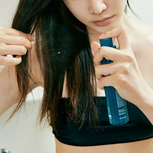 - Prior to heat styling, apply a sufficient amount to damp hair from a distance of 10 cm.