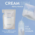 - Use scissors to open the pouch and refill the empty Cream Skin bottle.