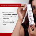 - After cleansing your face with Lashika Facewash and gently drying, mist the Lashika Rose Toner over your face and gently pat the toner onto your face and neck.