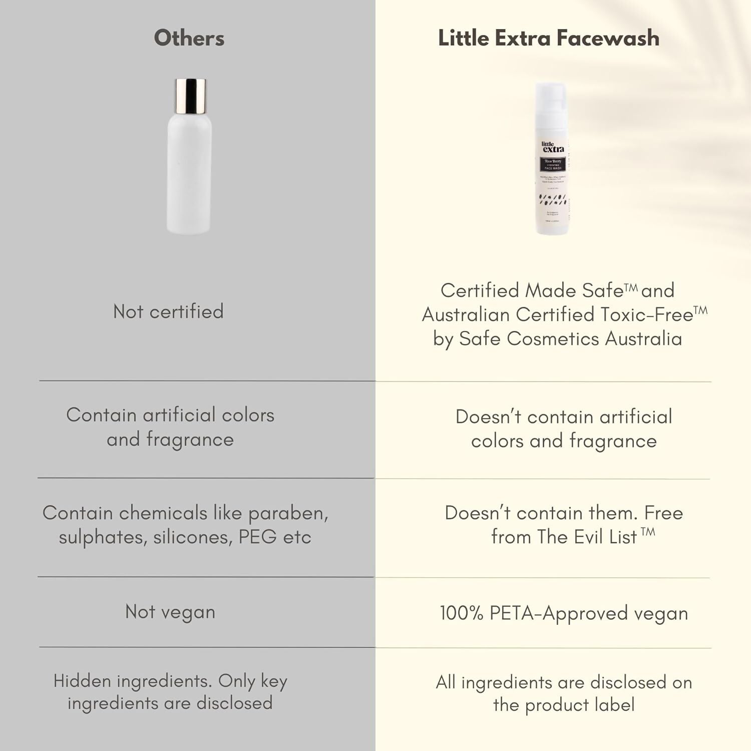 - Gentle Cleansing: Our face wash boasts a gentle formula that softly cleanses your skin. It prevents drying out your skin and is ideal for everyday use, effectively removing dirt, oil, perspiration, and excess sebum while preserving your skin’s natural oils.